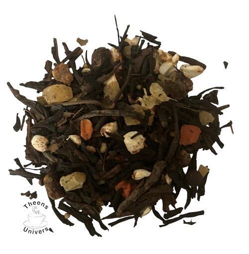 Theen indeholder: Sort Kinesisk Sencha, abrikosstykker, ingefærstykker, gulerodsflager, poppet boghvede, ristet boghvede, peber, kardemomme, søde brombærblade og saflor blomster. Når du læser ingredienslisten tænker du måske? ingefær og kardemomme det er ikke lige mig, men det skal siges, at du smager ikke disse to ingredienser. Det her er den allerførste the, hvor jeg har anvendt en sort Kinesisk Sencha som grundthe. I min verden er det absolut fint og lækkert, nærmere en premium the. Sort Kinesisk Sencha tilføjer en varm og rund dybde i smagen.